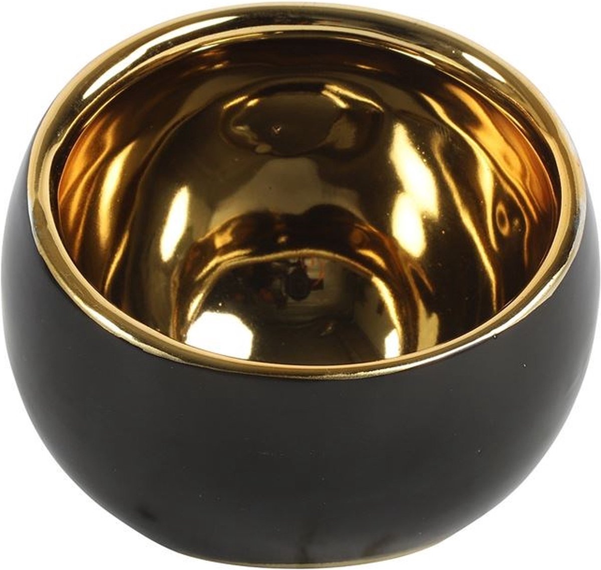 Theelichthouder Vaneta rond – zwart/goud – 20 x 20 x 17 cm