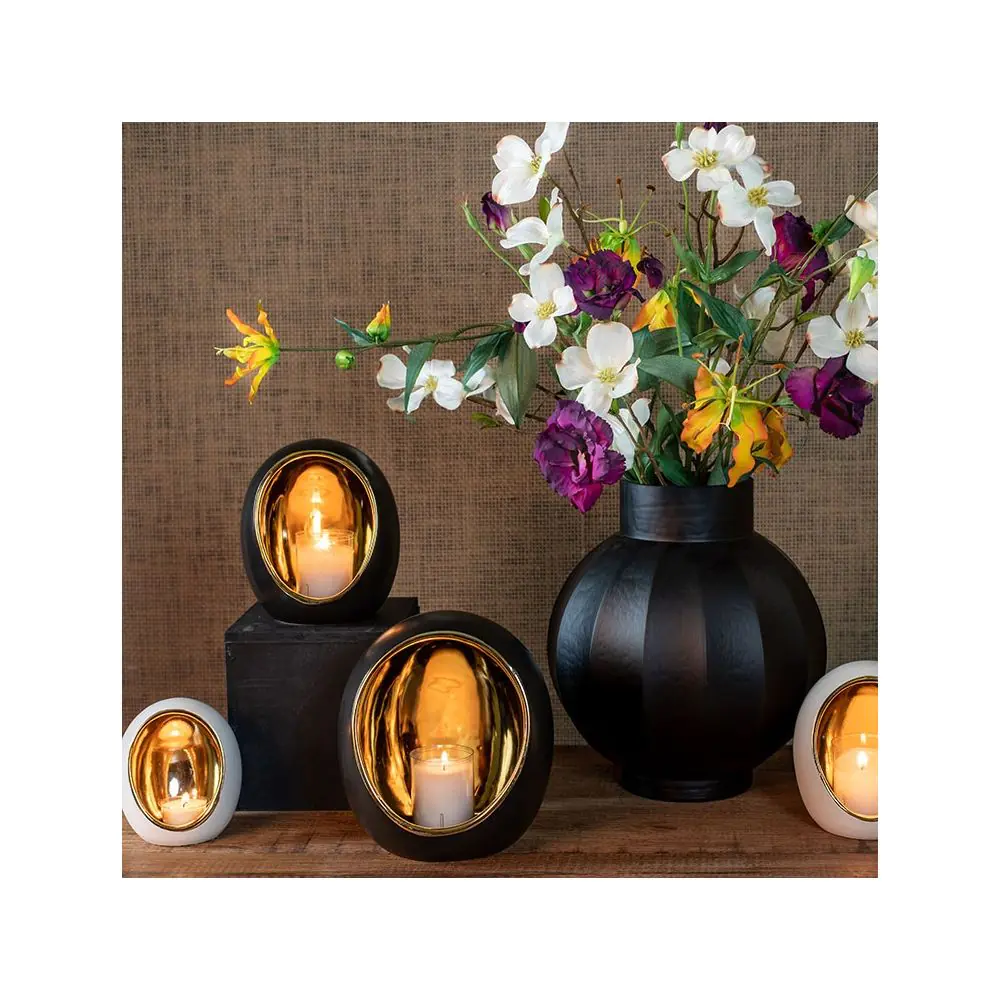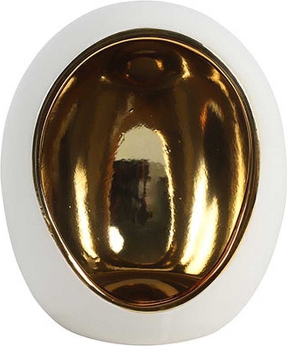 Sfeerlicht Varnia voegt een luxueuze touch toe aan je huis. De unieke vorm van een ei, ook wel Egg genoemd, creëert een prachtige sfeer als er een kaars in wordt gebrand. De binnenkant van het sfeerlicht is goud en geeft een bijzondere gloed. Perfect voor elk interieur, ideaal voor een gezellige sfeer in huis.